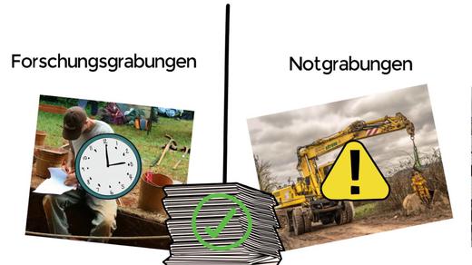 An unterschiedlichen Beispielen haben Studierende immer wieder herausgearbeitet, dass Archäologie ist in der öffentlichen Wahrnehmung stark mit dem Aspekt "Ausgrabung" verbunden ist.